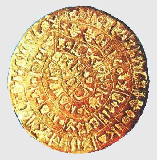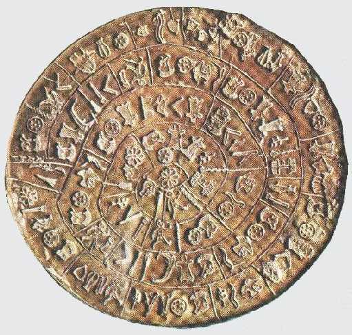 Zeichen auf der Vorder- und Rückseite des Diskus sind spiralförmig