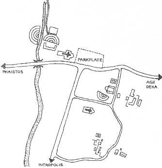 Nördlich des Odeons findet man die sagenumwobene, angeblich immergrüne Platane von Gortys. Der Sage nach sollen hier Zeus und die von ihm entführte Europa den späteren Herrscher von Knossos, Minos, gezeugt haben. Die weiteren Ausgrabungen sind heute kaum noch zu erkennen. Von den vielen Tempeln, Landhäusern und Toren sind meist nur noch bewachsene Steinhaufen übrig geblieben. |