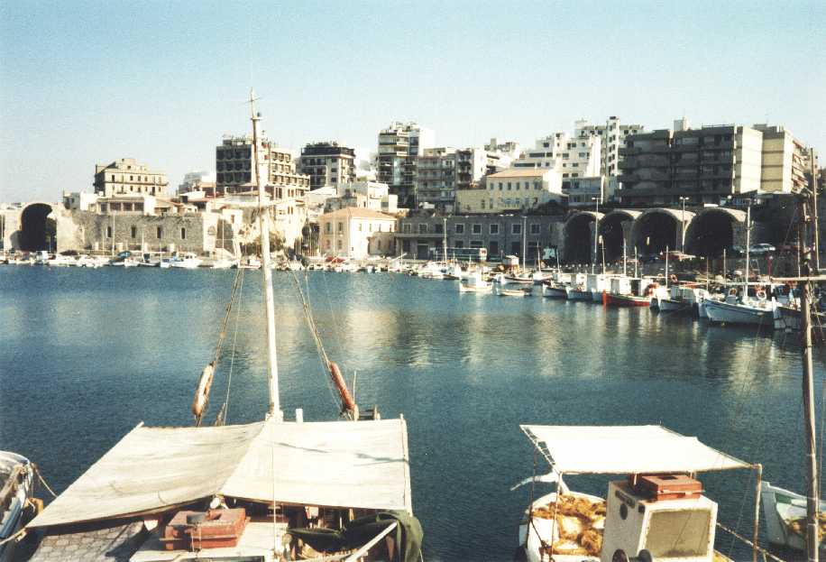 | Iraklio ist mit ca. 110.000 Einwohnern die fünftgrößte Stadt Griechenlands. Ihre frühe Geschichte liegt aber weitgehend im Dunklen. In der Nähe der venezianischen Festung wurden Ruinen aus minoischer Zeit gefunden. Dabei handelte es sich vermutlich um Reste eines kleinen Hafens, der für das nahegelegene Knossos erbaut wurde, aber nicht so bedeutend wie der Hafen von Amnissos wurde. | ||