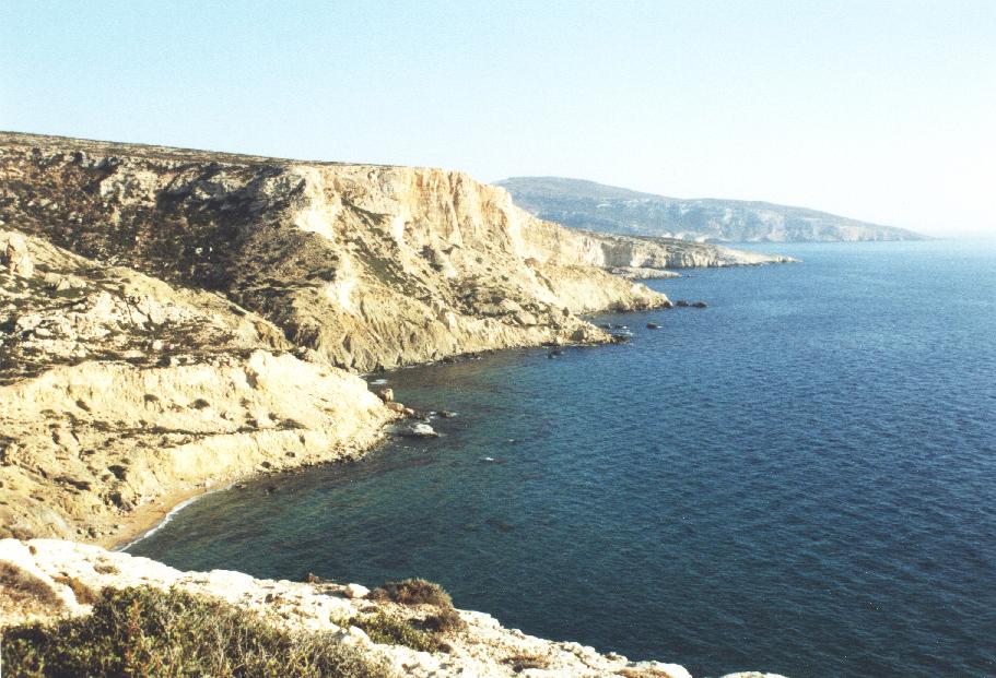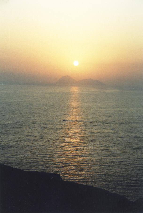 Matala, ein kleines Fischerdorf aber mittlerweile auch ein Touristenort, liegt im Süden Kretas, nur 7 km westlich von Festos an der Messara Bucht. Die Lage zwischen gelbbraunen Sandsteinfelsen ist grandios. Richtung Meer auf der rechten Seite ist ein in schrägen Schichten ins Meer hin abgleitender Felsen zu finden. In dieser Felsenformation befinden sich eine Vielzahl kleinerer und größerer Höhlen, die teils durch Auswaschen und teils durch Menschen gebildet wurden. Einige der Höhlen befinden sich auch unter dem Wasserspiegel. Zwischen den Felsen, die Matala im Norden und Süden begrenzen, breitet sich halbkreisförmig ein 300 m langer Sandstrand aus. Wegen des milden Klimas ist der Strand von Matala Sommer wie Winter ein beliebter Badestrand. Wem der Strand zu überlaufen ist, der findet in der südlich von Matala gelegenen Bucht, nur einen Sandsteinfelsen weiter, Kokkino Beach, einen herrlichen und wenig besuchten Badestrand. Während des Überquerens der Felsen hat man außerdem sowohl einen herrlichen Blick auf Matala und das nördlich gelegene Ida-Gebirge als auch auf die zerklüftete Sandstein-Steilküste im Süden. Vor allem der Sonnenuntergang, ein wunderschönes Naturschauspiel, läßt sich von hier oben genießen. Die Sonne versinkt hinter der Insel Paximadia. |