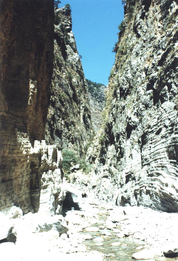 man die engste Stelle der Samaria Schlucht passiert, treten die Felsen