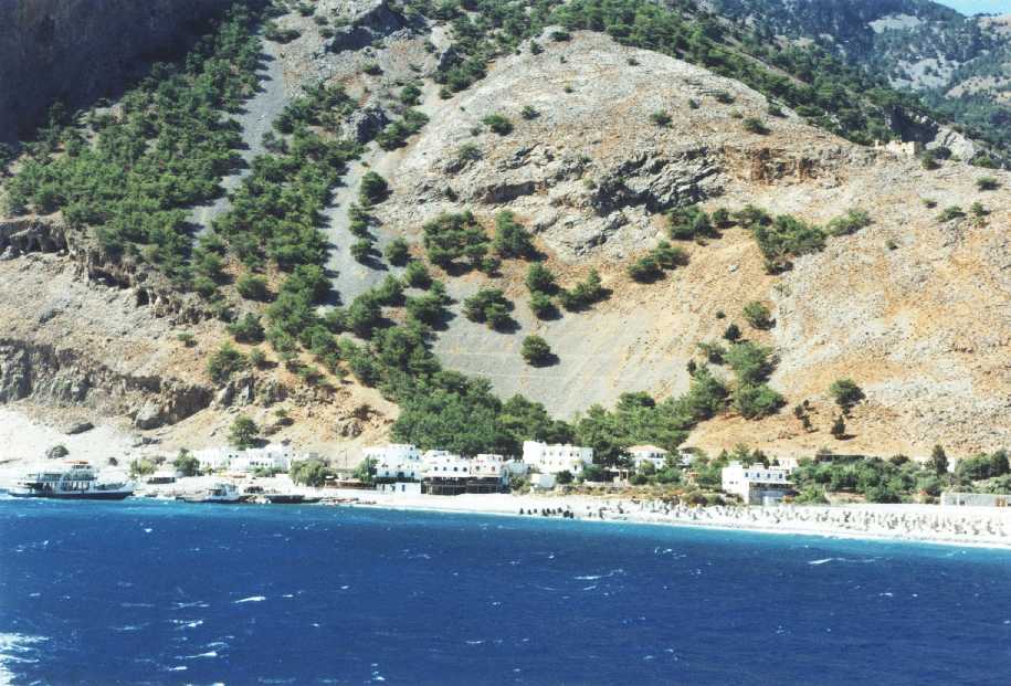 der Ort nur zu Fuß durch die Samaria Schlucht oder per Schiff,