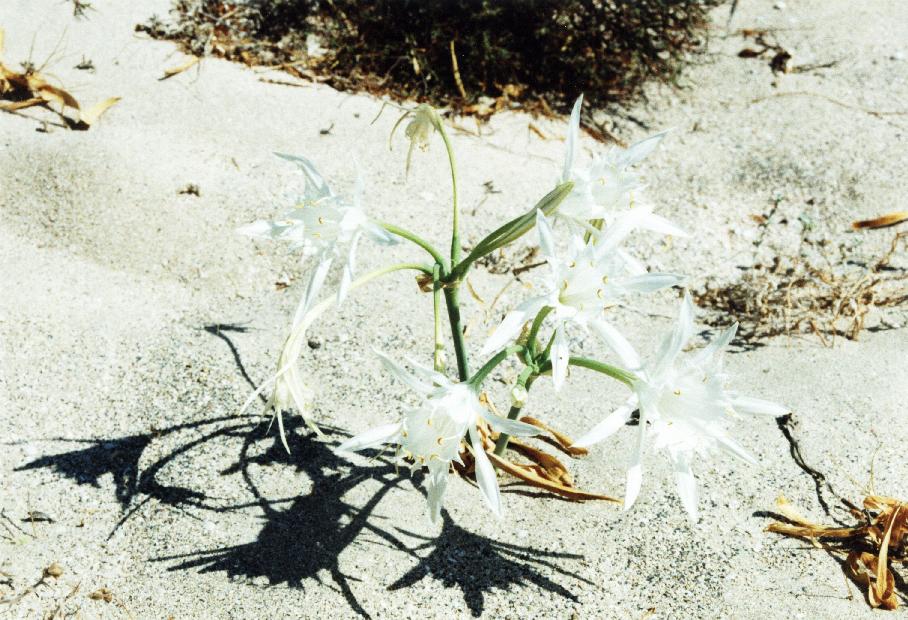 Auf den Dünen der Insel Elafonissi blühen im Sommer (ca. ab Juli) herrliche Blumen, nämlich die hauptsächlich auf den Weißdünen der südlichen französischen und iberischen Atlantikküste sowie an vielen Küstenbereichen des Mittelmeergebietes wachsenden Pankratzlilien (Pancratium maritinum). Diese duftenden Lilien, auch Kraftzwiebeln genannt, treten gelegentlich auch in Massen auf. Um vom Südwestzipfel Kretas an der Südküste entlang zu reisen muß, auf Grund der bergigen Landschaft und daher fehlender Straßen, auf Fährschiffe umgestiegen werden. Mit der Elafonisos Lines, einem winzigen Fährschiff, dessen Anlegesteg sich am felsigen Ufer befindet, gelangt man nach Paleochora, einen auf einer Landzunge gelegenen Ort an der SW-Küste mit kleinen Tavernen und einem wunderbar feinsandigen breiten weißen Sandstrand der zum baden einlädt. Die weitere Fahrt entlang der Südküste erfolgt ebenfalls mit Fährschiffen. Von Paleochora aus gelangt man in östlicher Richtung nach Agia Roumeli, dem Ort am Ende der Samaria Schlucht und Chora Sfakion. Von dort aus fahren wieder die "Green Busses" von KTEL. |