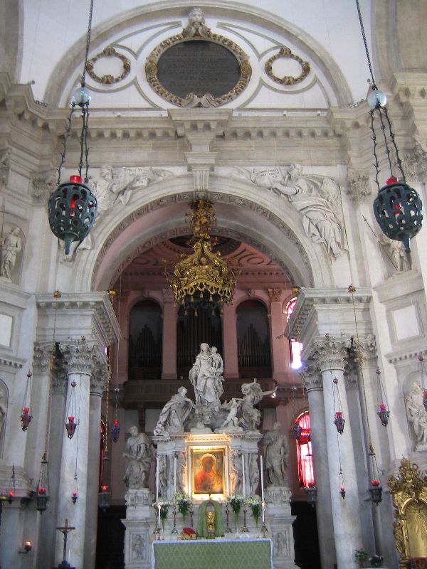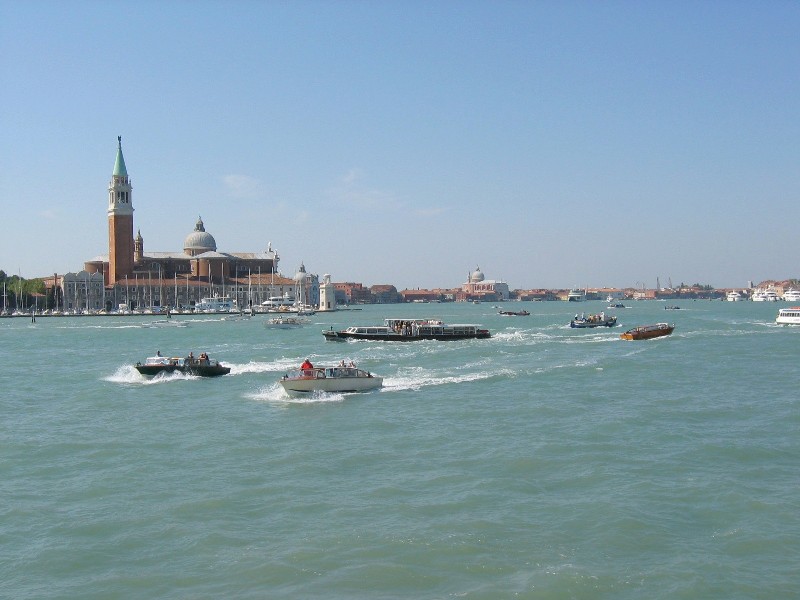 zuweilen auch in Höfe, "corti" auslaufen Venedig teilt sich in folgende Stadtbezirke: San Marco, Castello, Cannareggio, S.Croce, S.Paolo und Dorsoduro mit der Pfarrei S.Eufemia auf der Insel la Giudecca. Heute wohnen rund 100.000 Einwohner in der Inselstadt. Venedig ist mit dem vier Kilometer entfernten Festland außer per Schiffsverkehr auch durch zwei Lagunenbrücken verbunden. Die zweigleisige Bahnbrücke aus den Jahren 1841-46 ist 3.601 m lang, die zum Teil parallel laufende Straßenbrücke 4.070 m und 20 m breit. Sie wurde erst in den Jahren 1931-1932 gebaut. |