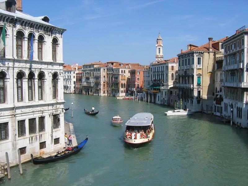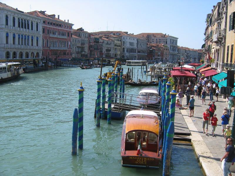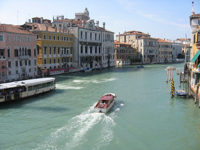 70 m, die Tiefe etwa 5 m. Er teilt Venedig in zwei ungleiche Teile und mündet
