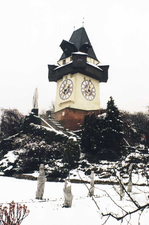 verschneiter Uhrturm