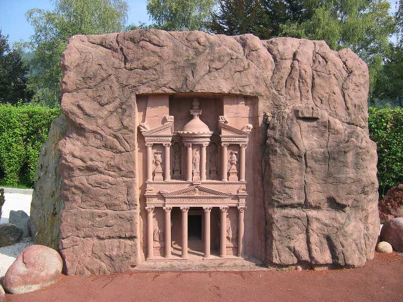 von Petra (Jordanien): Als eine der schönsten und rätselhaftesten Stätten der Antike gilt die Ruinenstadt Petra. Jahrhundertelang lag sie verborgen am Ende eines schmalen Hohlweges in der Wüste von Süd-Jordanien und wurde erst 1812 vom Schweizer Abenteurer J.L. Burckhardt entdeckt. Die Nabatäer, ein arabisches Wüstenvolk, haben die Stadt in vorchristlicher Zeit gebaut. Gut erhalten sind die Grabanlagen in den rot-, gelb- und violettfarbenen Sandsteinfelsen. |