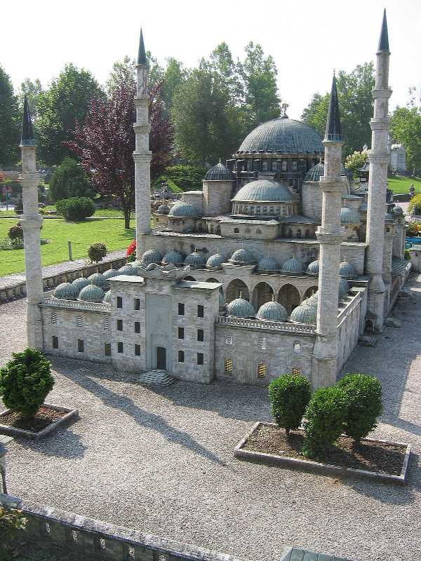 Moschee in Istanbul (Türkei): Die Suleiman Moschee mit ihren kaskadenähnlich abfallenden Kuppeln und ihren vier schlanken Minaretten beherrscht das Westufer des goldenen Horns. Sie gilt als die herrlichste der Moscheen in Istanbul und wurde zwischen 1550 und 1557 unter Sultan Süleyman dem Prächtigen vom Architekt Sinan erbaut. Im Garten des Moscheenkomplexes befinden sich Türben von Sultan Süleyman und seiner Frau, sowie das Grabmal des Baumeisters Sinan. |
