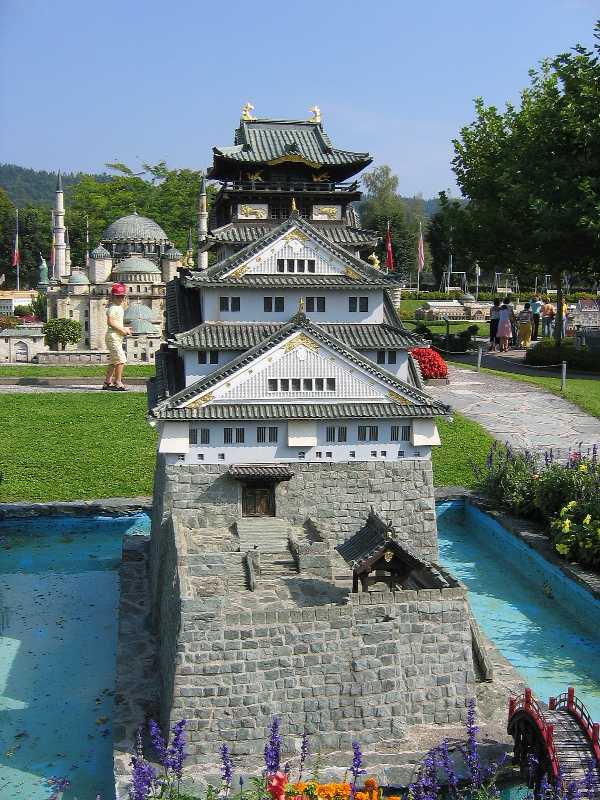 von Osaka (Japan): Sie ist das Wahrzeichen der Stadt Osaka. Der japanische Heerführer Toyotomi Hideyoshi ließ die Burg erbauen. Nach nur dreijähriger Bauzeit wurde sie 1585 fertiggestellt. Durch einen Brand 1615 zerstört wurde sie wieder aufgebaut. Im 19. Jh. wurde sie nocheinmal zerstört und erst vor 70 Jahren rekonstruiert. heute befindet sich in dem mächtigen Baudenkmal eine Ausstellung über die Geschichte der Stadt und der Burg. |