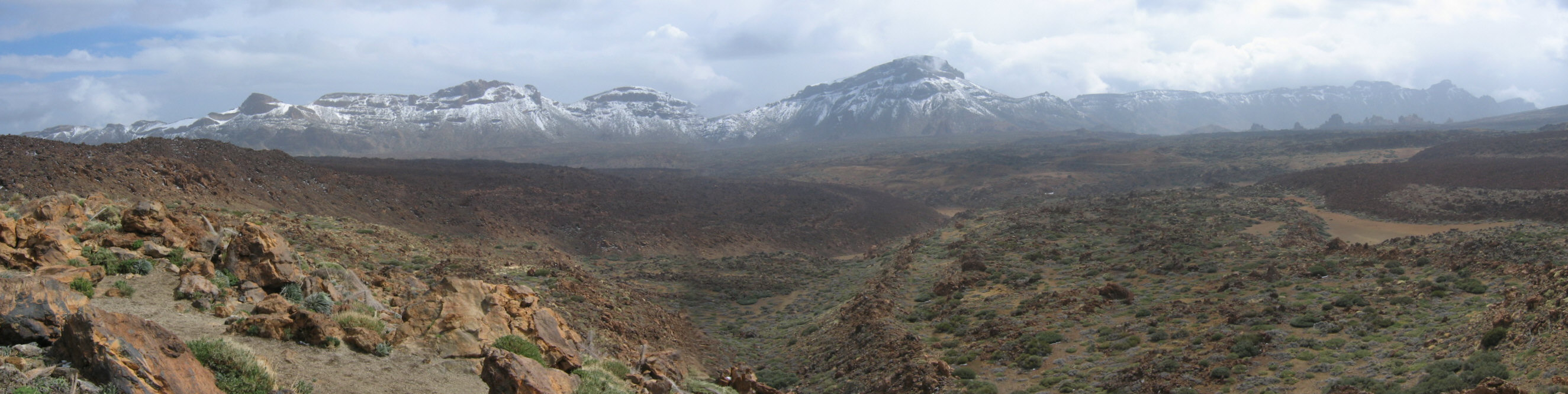 Panorama vom Mirador de Tabonal Negra über die Caņadas de la Grieta und die Caņadas la Mareta bei trübem kalten Wetter